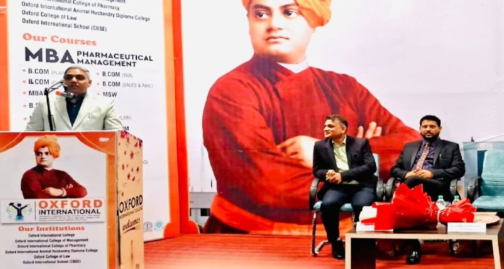 ऑक्सफोर्ड इंटरनैशनल कॉलेज इंदौर में “आर्टिफ़िशियल इंटेलिजेंस के युग में फार्मेसी क्षेत्र में उभरते करियर अवसर” विषय पर संगोष्ठी आयोजित की गई, जिसमें मुख्य अतिथि वक्ता के रूप में फार्मेसी काऊंसिल इंडिया (भारतीय भेषजीय परिषद) के राष्ट्रीय उपाध्यक्ष श्री जशुभाई हीराभाई चौधरी उपस्थित रहे।