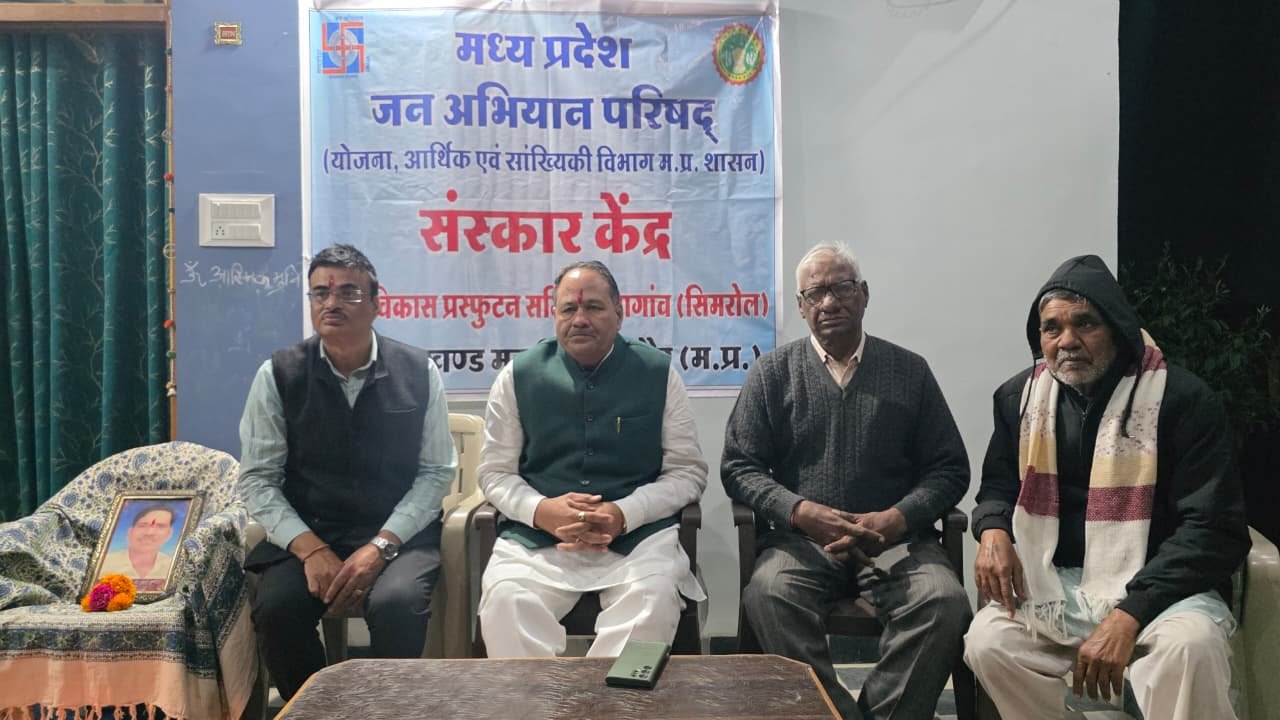 महू विकासखंड के आदर्श ग्राम नयागांव में चौपाल बैठक का आयोजन मध्यप्रदेश जन अभियान परिषद के माननीय उपाध्यक्ष श्री मोहन जी नागर की मुख्य आतिथ्य में किया गया। इस दौरान परिषद के संभाग समन्वयक श्री अमित शाह, जिला समन्वयक श्रीमती ऋतुजा पहाडे, विकासखंड समन्वयक श्रीमती आरती बर्वे, श्री मनोहर जी यादव, श्री इंदरसिंह जी बुंदेला, श्री सुंदरलाल जी बुंदेला , श्री दिलीप बडसरे नवांकुर संस्था, श्री ललित जी लाभांते, श्री सत्यनारायण जी मालवीय, समस्त नवांकुर संस्था, समस्त मेंटर्स,बड़ी संख्या में ग्राम के स्थानीय ग्रामीण उपस्थित रहे। स्थानीय ग्रामीण युवतियों ने पारंपरिक वेशभूषा में नृत्य के साथ अतिथियों का स्वागत किया। अपने उद्बोधन में मुख्य अतिथि श्री मोहन जी नागर द्वारा ग्राम विकास प्रस्फुटन समिति द्वारा किए जा रहे कार्यों की सराहना की गई। आदर्श ग्राम के संदर्भ में महत्वपूर्ण बिंदुओं को रेखांकित करते हुए श्री मोहन जी नागर द्वारा समिति को आदर्श ग्राम बनाने हेतु प्रेरित किया गया। आभार श्रीमती आरती बर्वे विकासखंड समन्वयक द्वारा किया!
