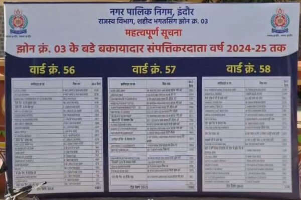 Bydainik indoresanket24December 13, 2025इंदौर नगर निगम का राजस्व अभियान हुआ तेज बड़े बकायेदारों की लिस्ट राजवाड़ा पर की चस्पा अधिकारी ने बताया कि 60 बड़े बकाएदार...