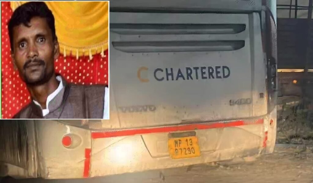 इंदौर के मांगलिया टोल के पास सोमवार देर रात एक तेज गति से जा रही चार्टर्ड बस ने एक दम्पति को टक्कर मर दी जिसमे एक युवक की मौके पर ही मौत हो गयी