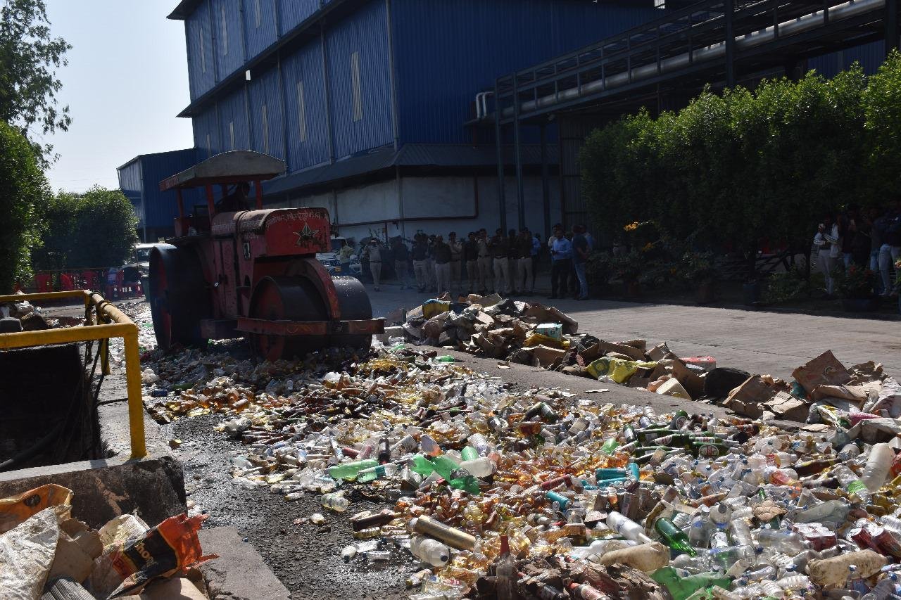 जिले के सभी 15 वृत्तो से प्राप्त सूची अनुसार, कुल 7553.74 बल्क लीटर देशी मदिरा, 1403.16 बल्क लीटर विदेशी मदिरा स्प्रिट, 2298.4 बल्क लीटर विदेशी मदिरा माल्ट, 29420 बल्क लीटर हाथ भट्टी मदिरा, महुआ लाहन के सेंपल, एवं 450 कि.ग्रा. भांग का, मेसर्स माउण्ट एवरेस्ट ब्रेवरीज लिमि. मेमदीग्राम, सिमरोल, महू, जिला इंदौर के परिसर में विधिवत नष्टीकरण किया गया। उक्त समस्त मदिरा एवं अन्य सामग्री का अनुमानित मूल्य रूपये 2,20,93,574/- है। कार्यवाही में गठित नष्टीकरण समिति एवं जिले का कार्यपालिक बल उपस्थित रहा । उक्त कार्यवाही की विधिवत वीडियोग्राफी कराई गई!