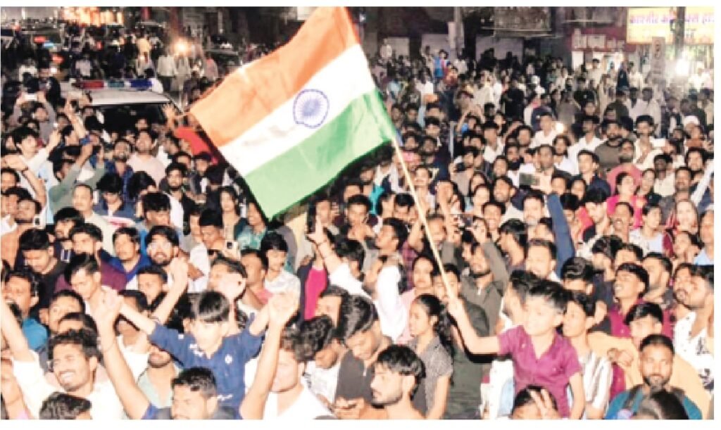 भारतीय टीम की पाकिस्तान पर 61 रनों की जीत का जश्न पूरा देश मना रहा है इंदौर में क्रिकेट प्रेमियों सहित सभी लोगो ने राजवाडा पहुच कर अपनी जीत की ख़ुशी का आनंद उठाया और एक दुसरे को बधाई दी