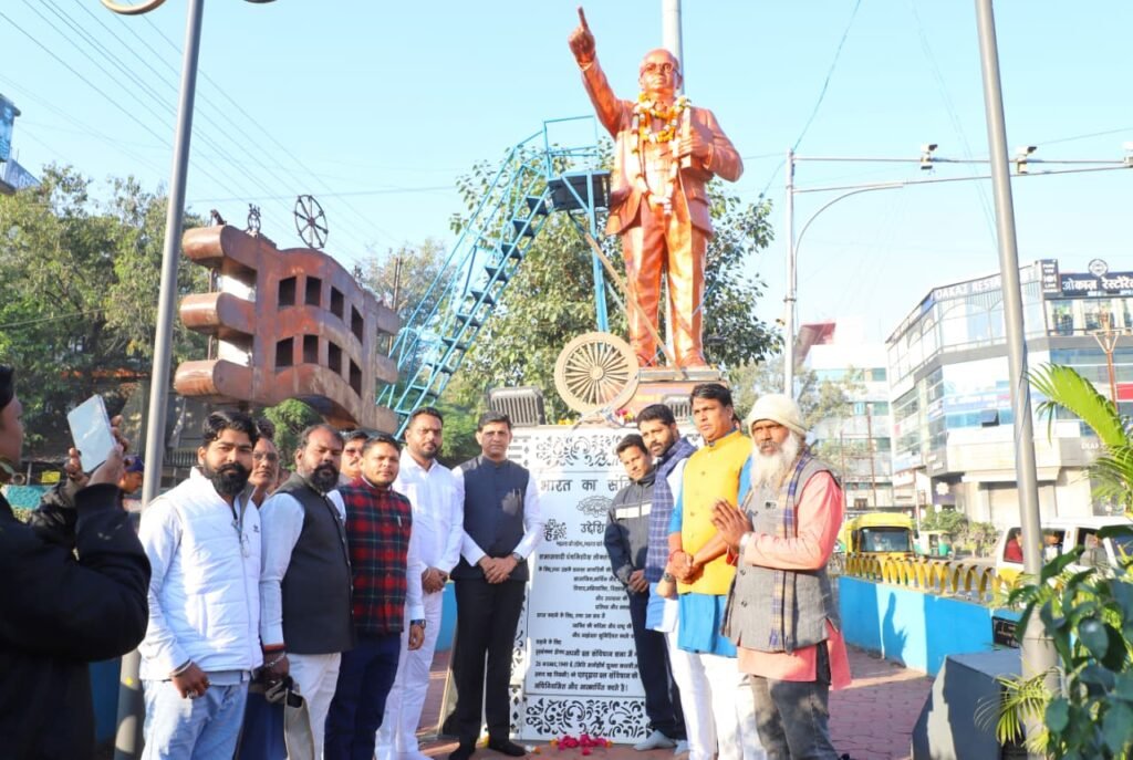 इंदौर दिनांक 6 दिसंबर 2025।संविधान निर्माता डॉक्टर भीमराव अंबेडकर की पुण्यतिथि के अवसर पर महापौर श्री पुष्यमित्र भार्गव द्वारा गीता भवन चौराहे स्थित डॉ अंबेडकर जी की प्रतिमा पर माल्यार्पण किया गया। इस अवसर पर नागरिकों द्वारा भी माल्यार्पण किया गया।