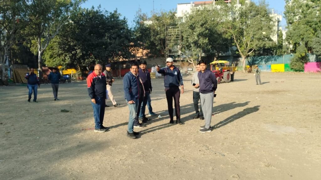 इंदौर दिनांक 6 दिसंबर 2025।महापौर श्री पुष्यमित्र भार्गव एवं आयुक्त श्री दिलीप कुमार यादव द्वारा महावार नगर दशहरा मैदान का निरीक्षण किया गया निरीक्षण के दौरान अपर आयुक्त श्री रोहित सिसोनिया, श्री श्रृंगार श्रीवास्तव,क्षेत्रीय पार्षद श्री योगेंद्र सिंह गेंदर , श्री भारत पारख, जोनल अधिकारी श्री नदीम खान, भवन अधिकारी श्री वैभव देवलासे और अन्य अधिकारी उपस्थित थे।