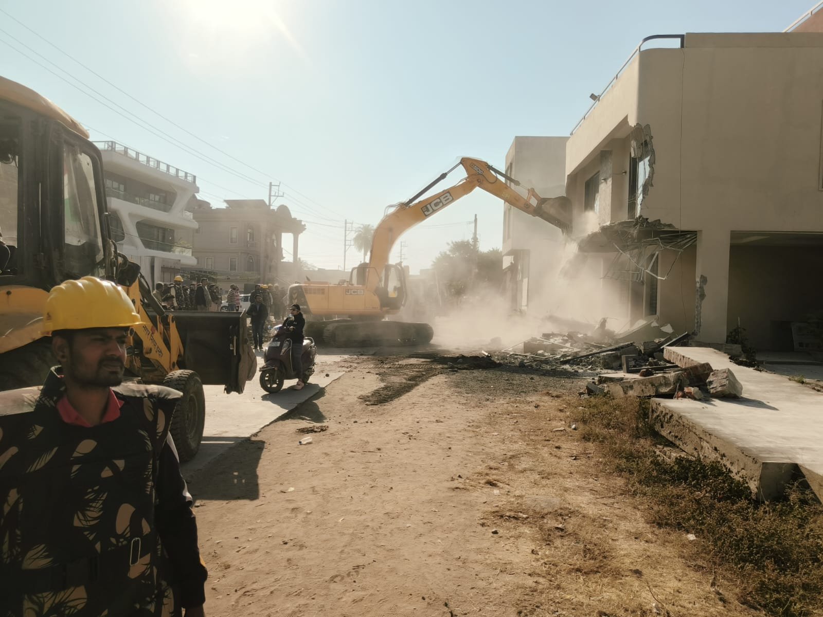 बड़ी संख्या में नगर निगम का रिमूवल अमला और पुलिस मौके पर मौजूद